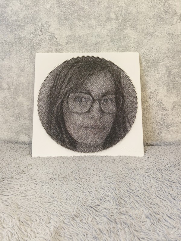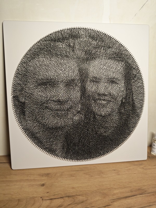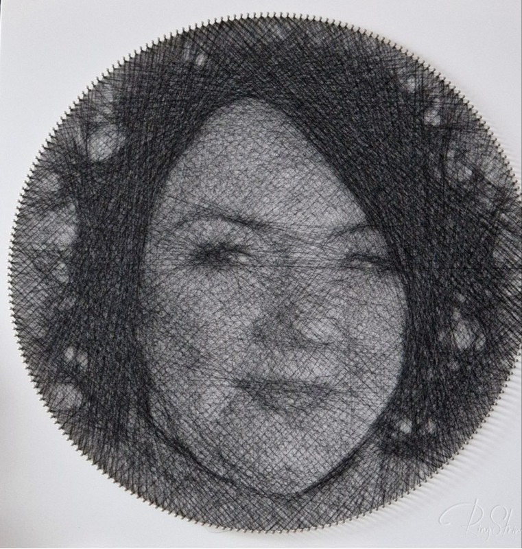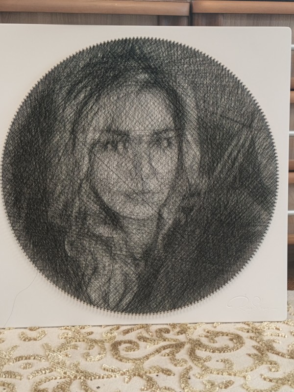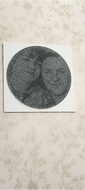 Получила набор в подарок. Долго не могла приступить, т. к. не был понятен процесс, сколько времени займет, как вообще из ниток может получиться портрет...Потом долго выбирала фото, не было понимания, что вообще получится.