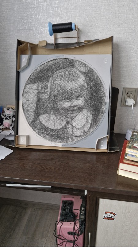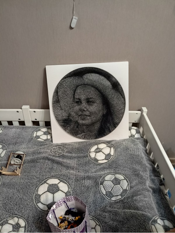 Хотелось сделать оригинальный подарок. Давно думал о том, чтобы сделать именно картинку нитями, но казалось, что это сложно и картина не получится. Рискнул. Работа заняла 8-10 часов с перерывами, были сложности, но потом уже привыкаешь. Я сделал через ИИ свой рисунок и с него уже сделал картину. Делается все достаточно быстро, удобное приложение. В целом это интересное и приятное занятие. Картину делал в подарок - не знаю насколько этот подарок оценили - покажет время. Но смотрится вполне достойно.