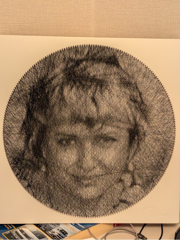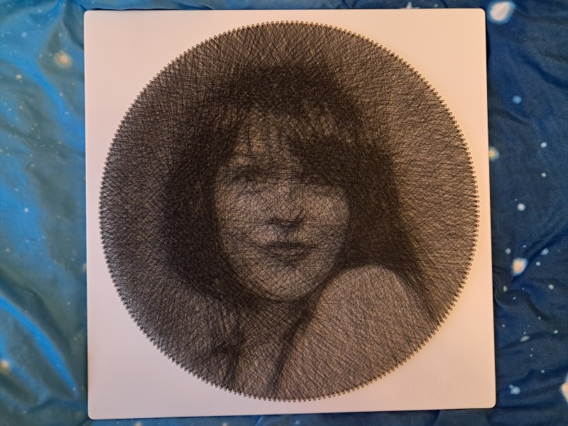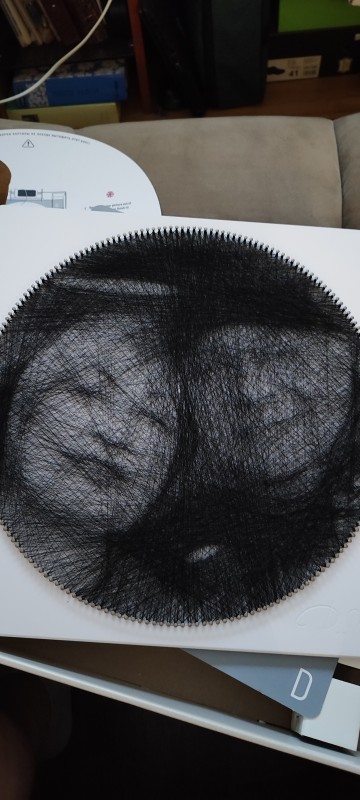 Создание картины заняло чуть меньше 4х часов. Удобный формат можно собирать под голос, можно по инструкции PDF. Большая рамка, тяжелая и крепкая. Все продумано для плетения. Минус - очень тяжело подобрать фотографию. Результат тоже интересный. Не один в один, а есть пространство для додумывания. Схожесть, конечно, есть.