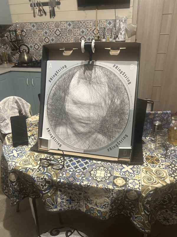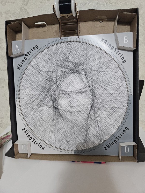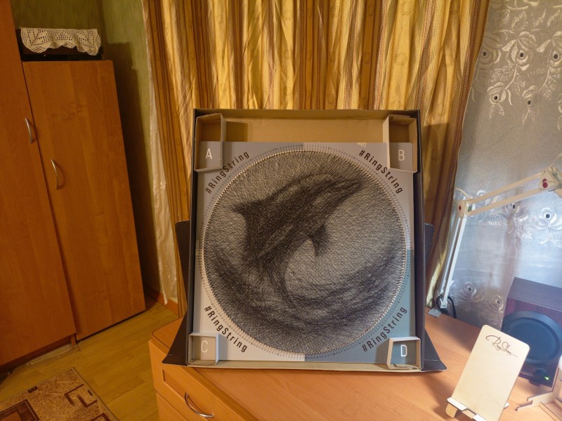 Получила в подарок на ДР Ringstring. Долго выбирала подходящую фото. Получилось отлично! Воотчию гораздо лучше, чем на снимке. Понравилось работать. Здорово, что есть разные режимы - быстрее, медленнее. Очень хорошо помогает голосовой помощник. Всё очень понятно, и дублируется наглядно. Очень здорово организовано рабочее место. Прекрасно! Медитирующая музыка полностью проникает и поглащает в процесс созидания. Собрала за три присеста! Смотреться будет на солнечной стене.